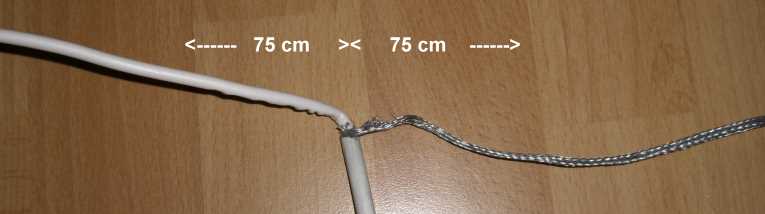 75 cm ob und ziagst as ausanand, oiso Innenleiter und Abschirmgeflecht ausanandaziang. Dann host a Dipol Antenne de genau für UKW Sender basd.